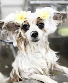やほーい 茜ですん 午前中 いっちゃんのトリミング行った🐶✂️ 今回もお花ついてる🌼 おめめ可愛すぎやろ🥹💘 そして ありぺいとネイルなう💅🏾✨️